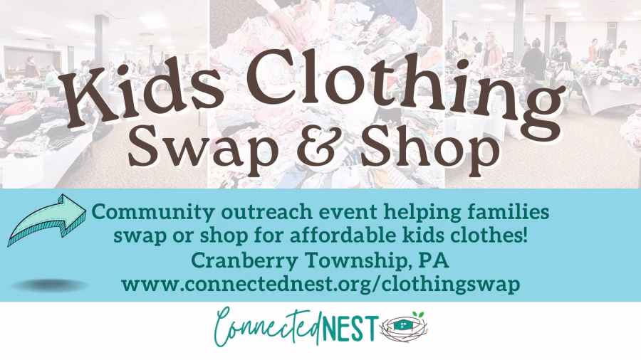 At the Kids Clothing Swap & Shop, families can swap and shop for new-to-them clothes while also supporting Connected Nest, our nonprofit dedicated to serving and supporting families on the path to and through parenthood.